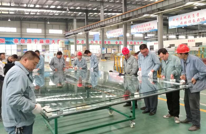 這是福坤建廠以來生產(chǎn)的大板面的夾膠點式中空玻璃,一塊一 噸 重左右,單體大面積達14㎡多,用于泰興一建大廈觀光電梯,技木含量、生產(chǎn)難度那是相當?shù)母摺?/span>